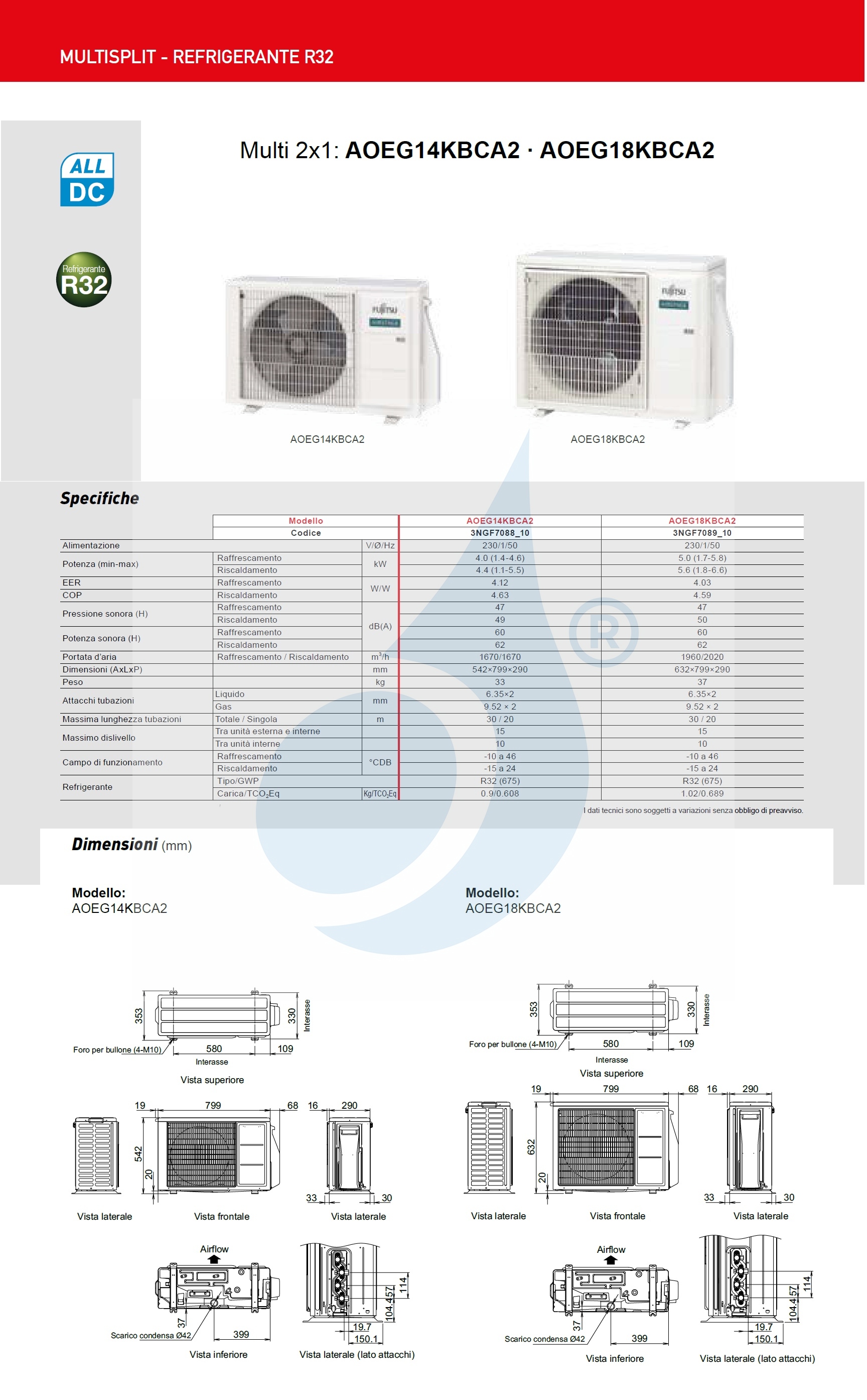 Klimaanlagen Fujitsu Duo Split Serie KGTG WiFi 7000+7000 Btu Heizung mit Wärmepumpe mit Niedrigenergieverbrauch Invertertechnologie