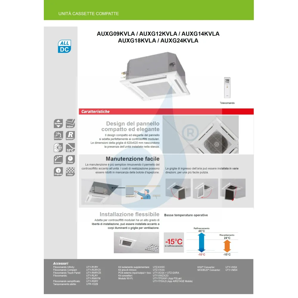 Interne Kassetteneinheit AUXG12KVLA 12.000 BTU 3.5 kW Kompakte KV-Serie