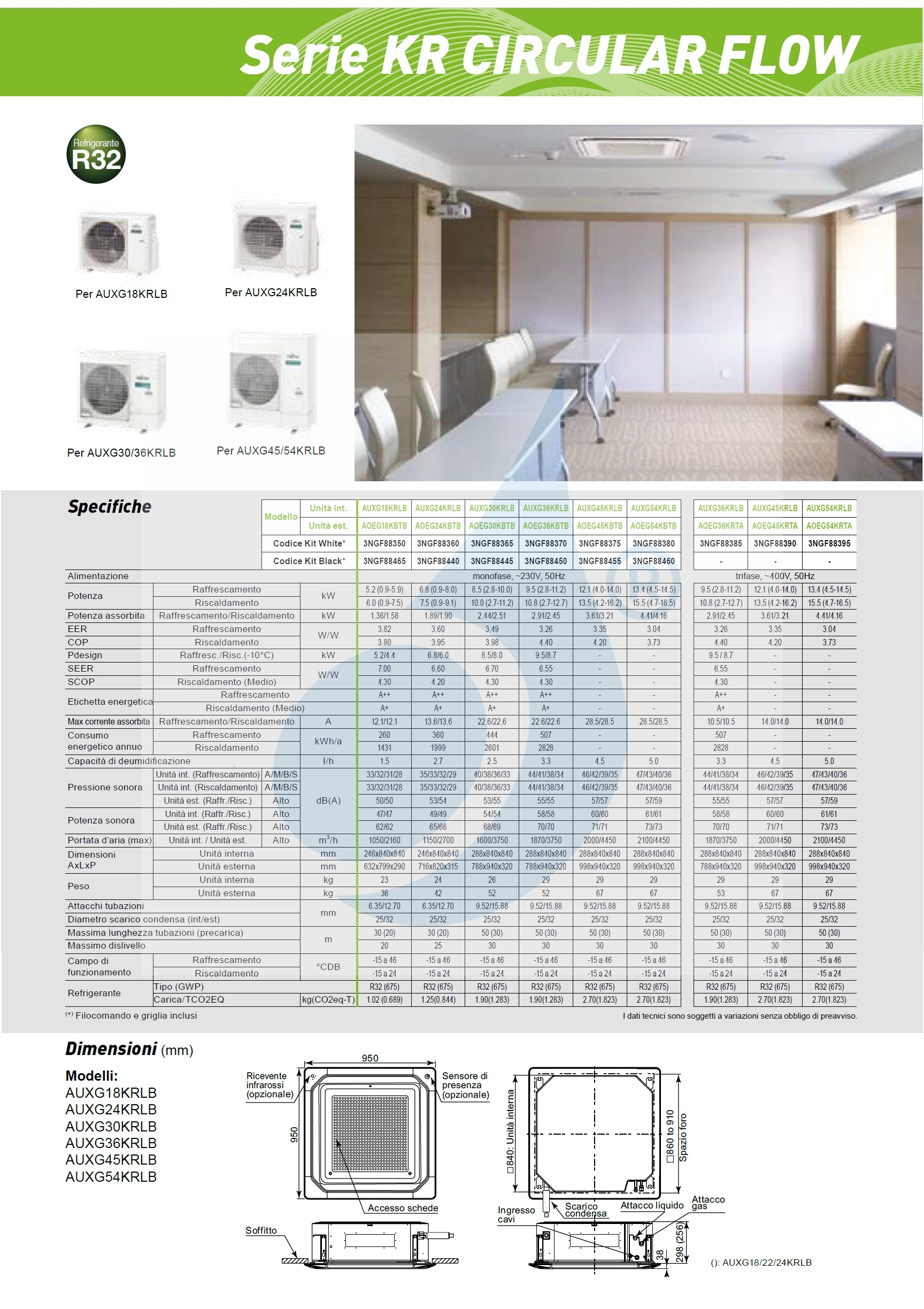 Ideal für Umgebungen ein Innengerät bis zu 135 mq
