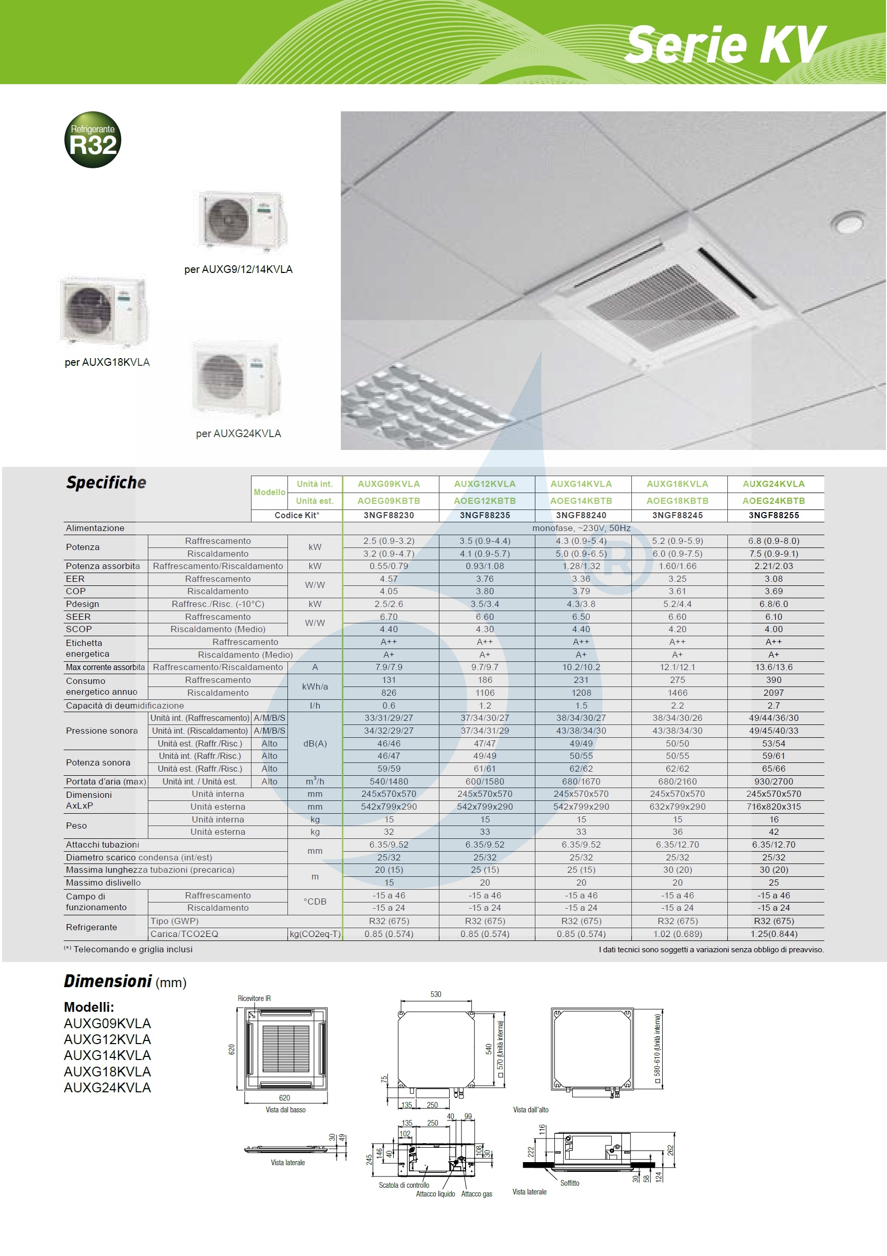 Interne Kassetteneinheit AUXG12KVLA 12.000 BTU 3.5 kW Kompakte KV-Serie