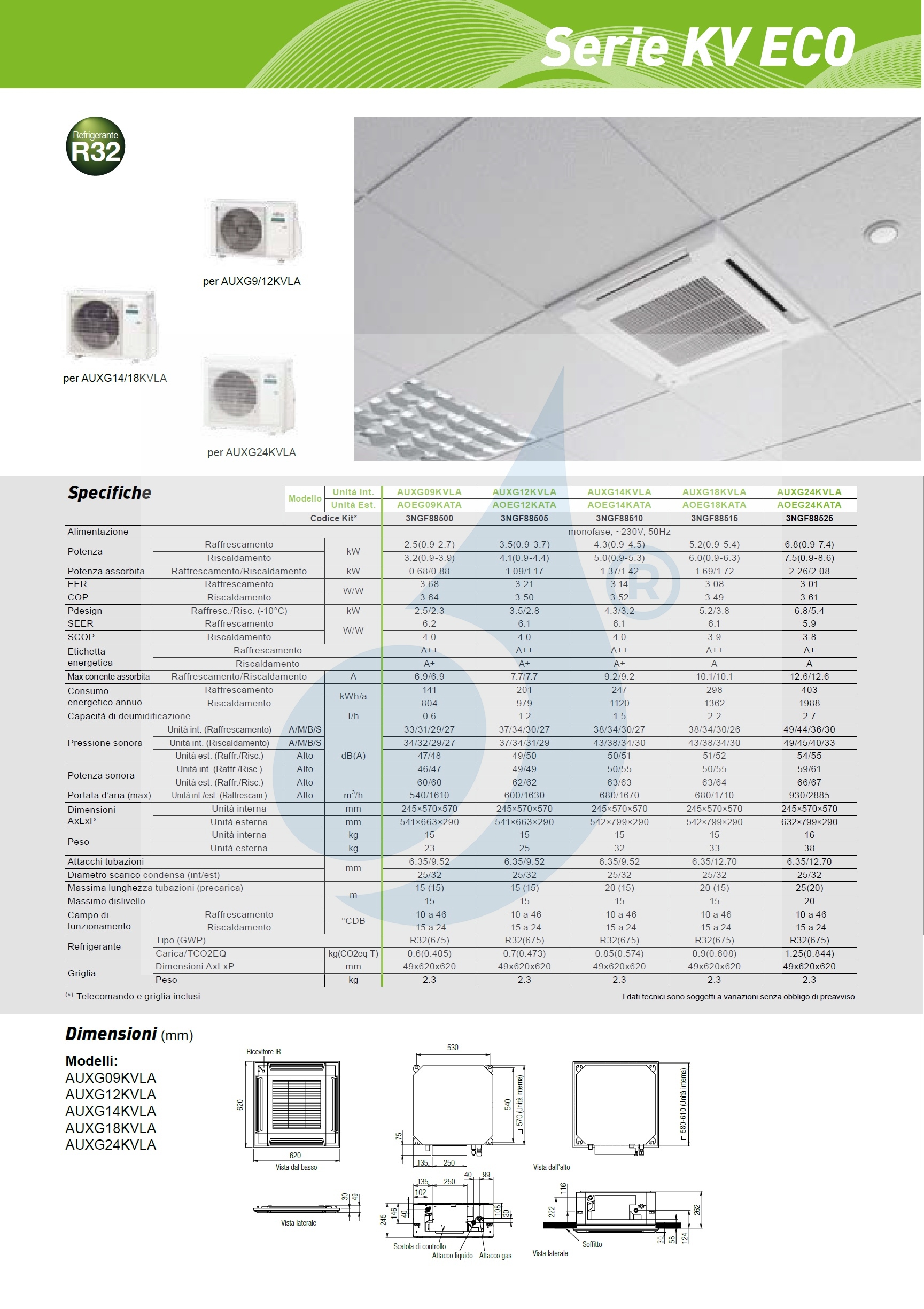 Interne Kassetteneinheit AUXG18KVLA 18.000 BTU 5.0 kW Kompakte KV-Serie