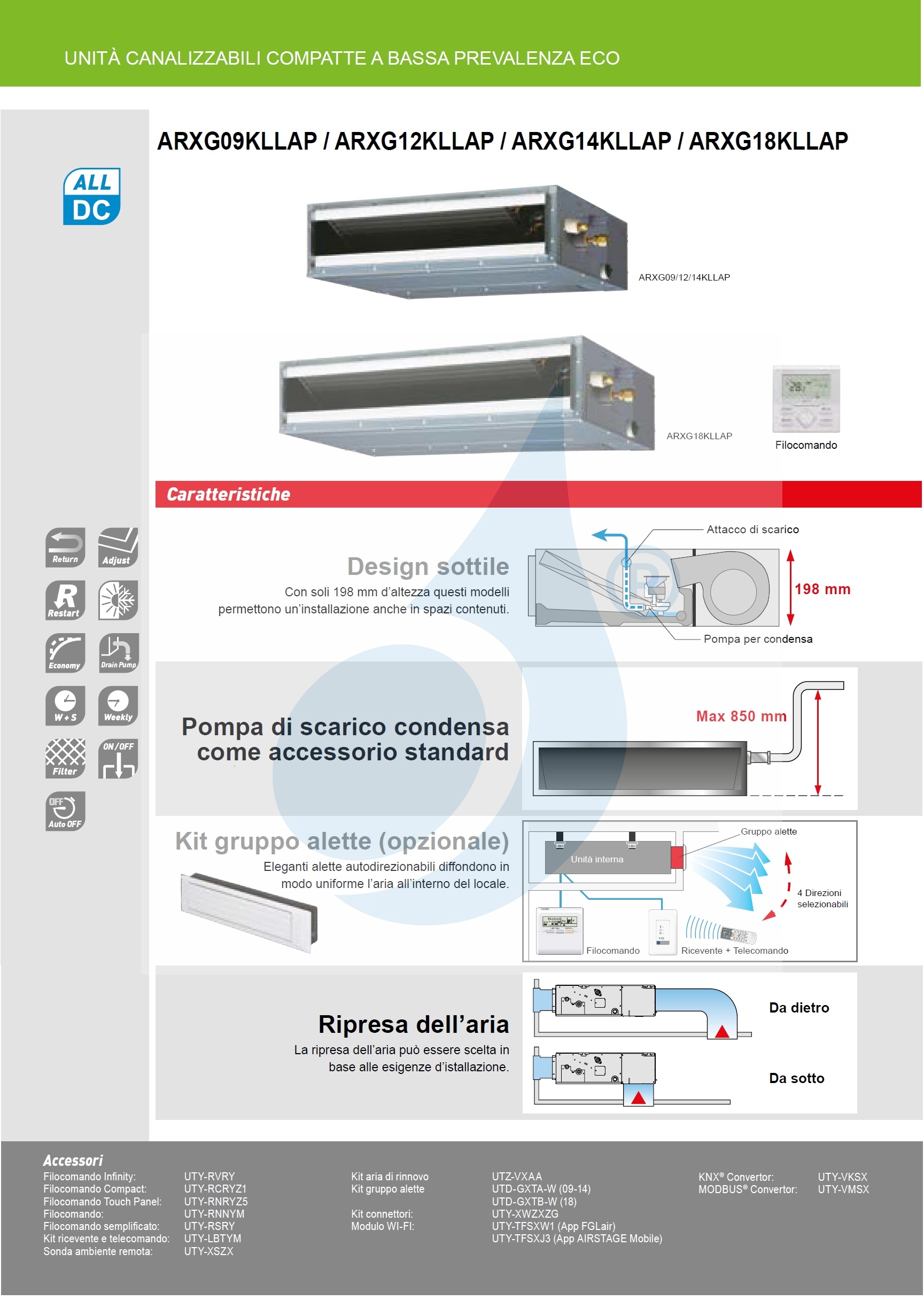 Interne Kanaleinheit ARXG18KLLAP 18.000 BTU 5.0 kW Kompakte Niederdruckpumpe der KL-Serie
