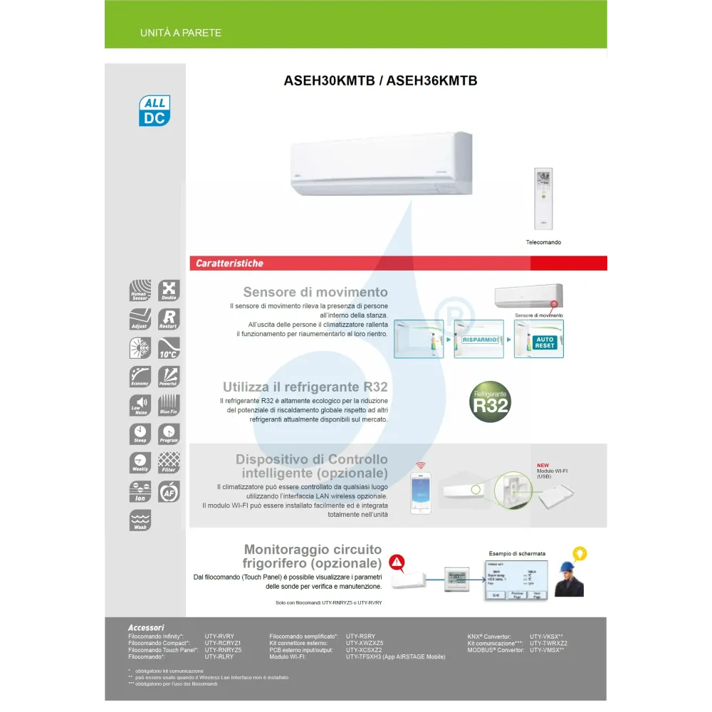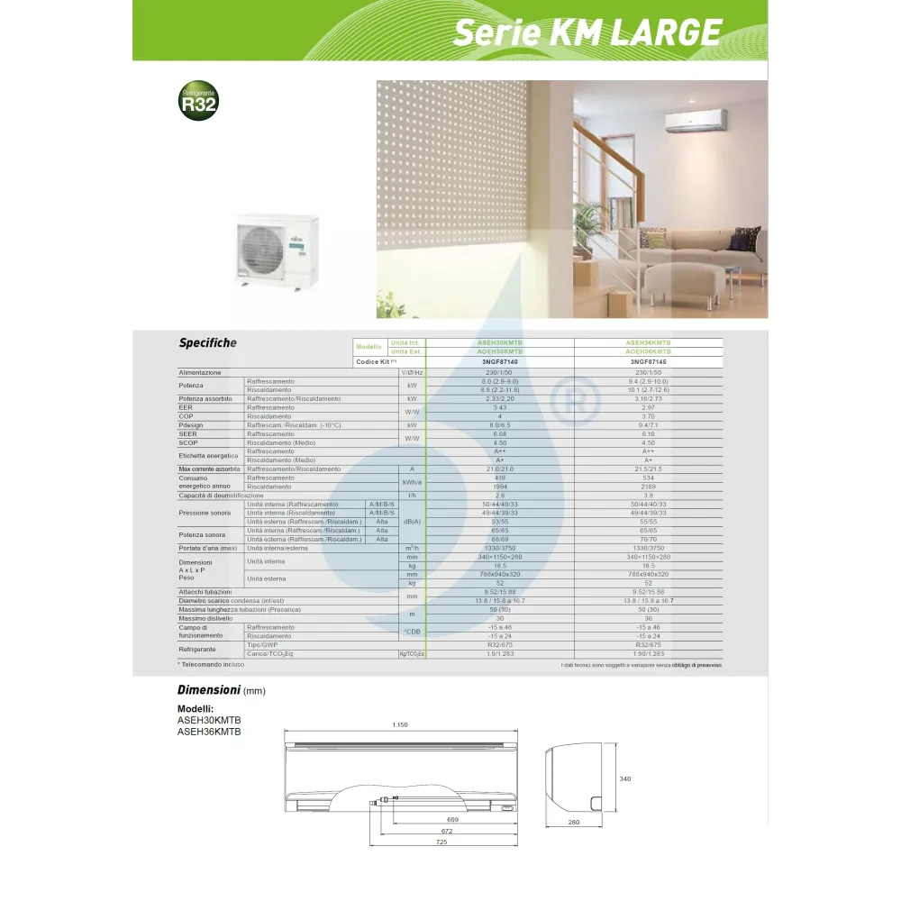 Klimaanlagen Fujitsu Mono Split Serie KM Large WiFi Optional 36000 Btu Heizung mit Wärmepumpe mit Niedrigenergieverbrauch Invertertechnologie