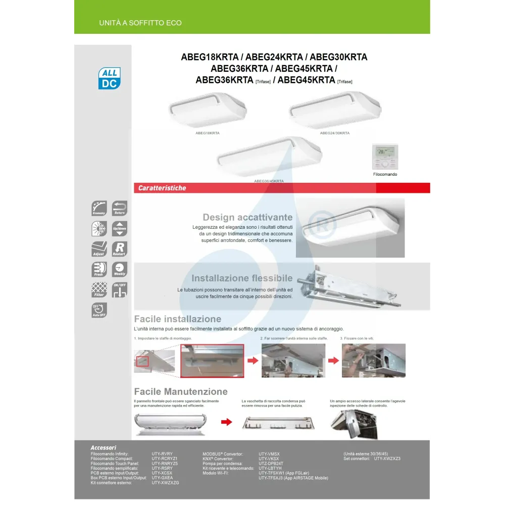 Fujitsu Mono Split Decke 45000 Btu ABEG45KRTA AOEG45KATA Klimaanlage Serie Eco KR R-32 Einphasig 220v