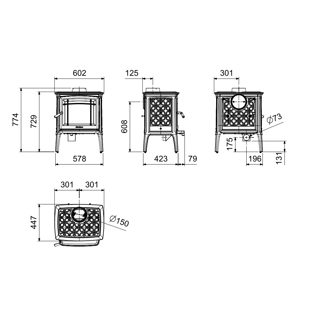- Gewicht: 130 kg (nur Ofen, ohne Zubehör)