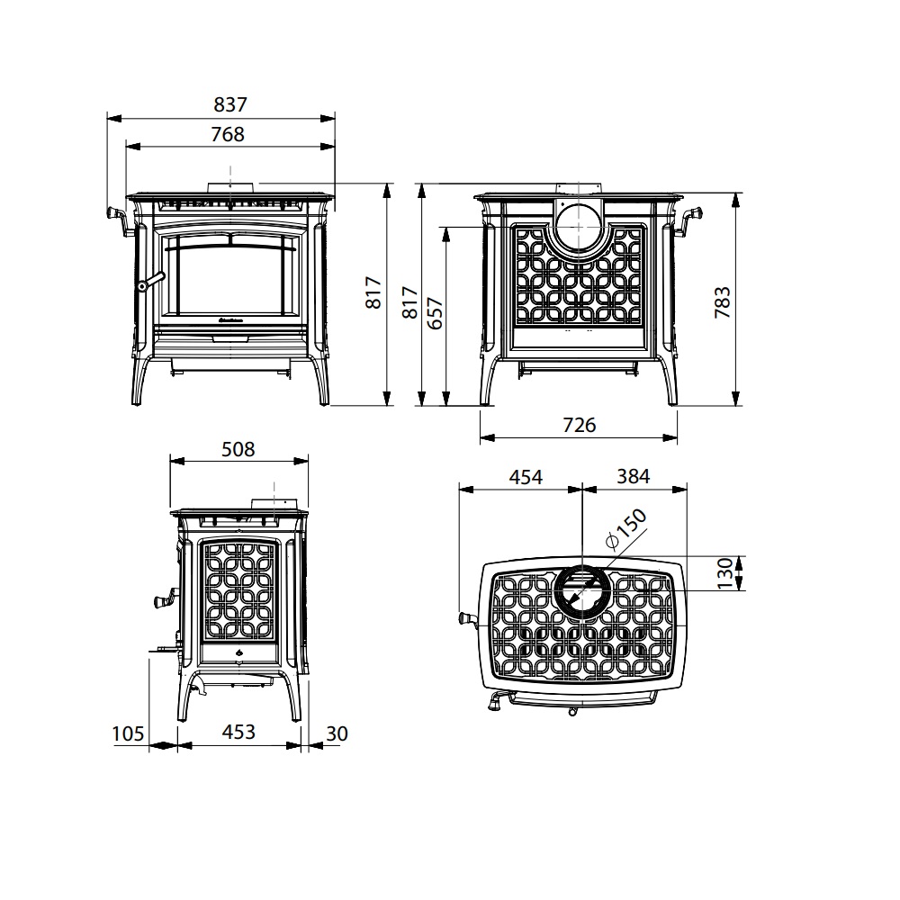 - Rauchrohrdurchmesser: 150 mm