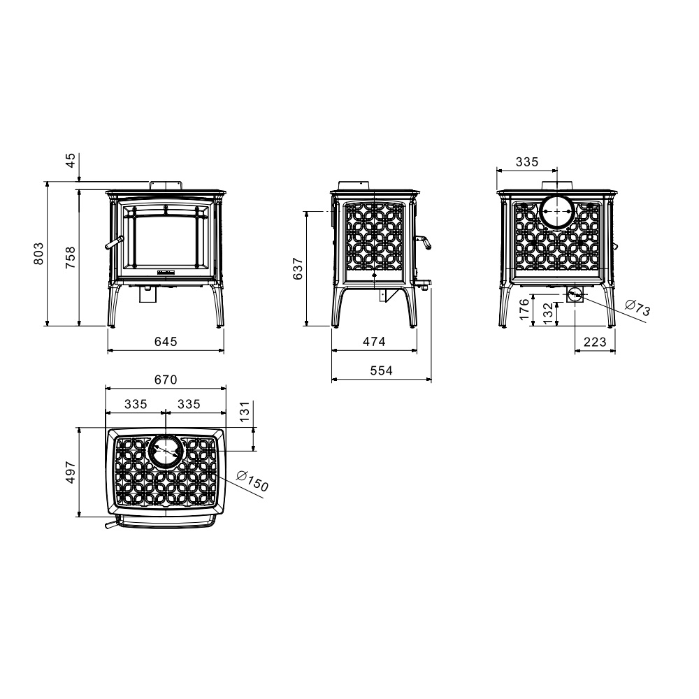 - Rauchrohrdurchmesser: 150 mm