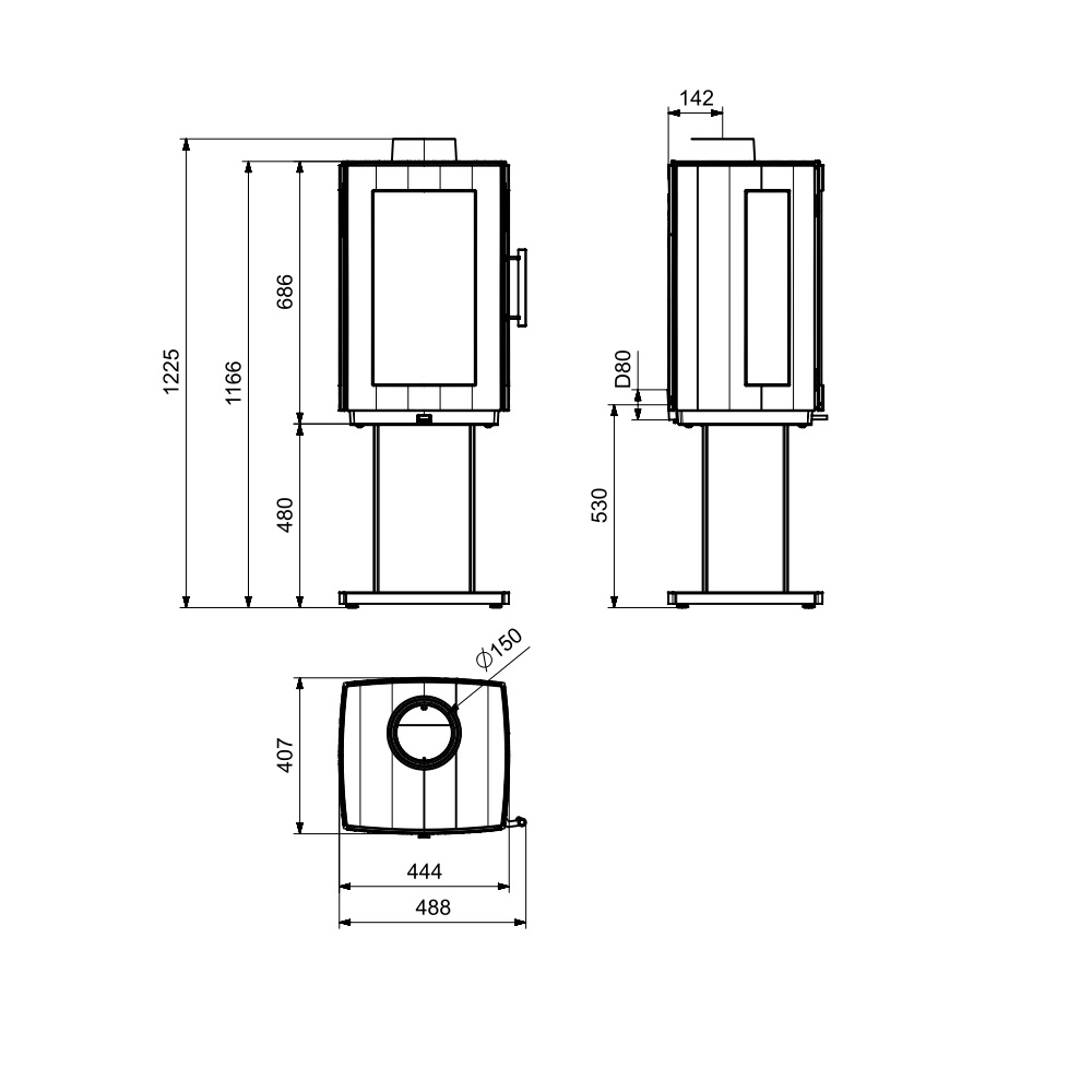 - Rauchrohrdurchmesser: 150 mm