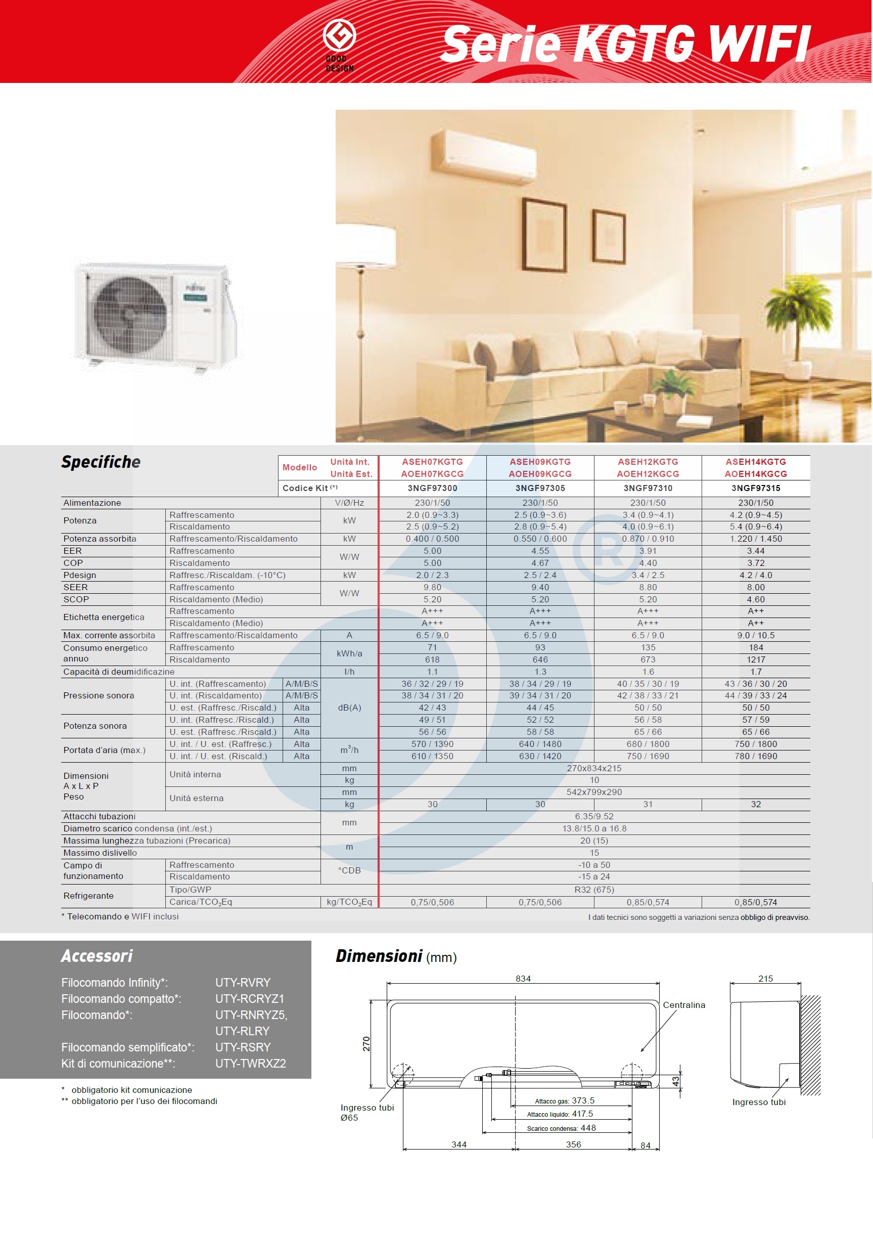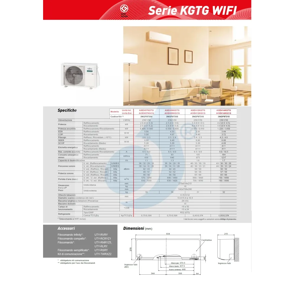 Klimaanlagen Fujitsu Mono Split Serie KGTG WiFi 7000 Btu Heizung mit Wärmepumpe mit Niedrigenergieverbrauch Invertertechnologie