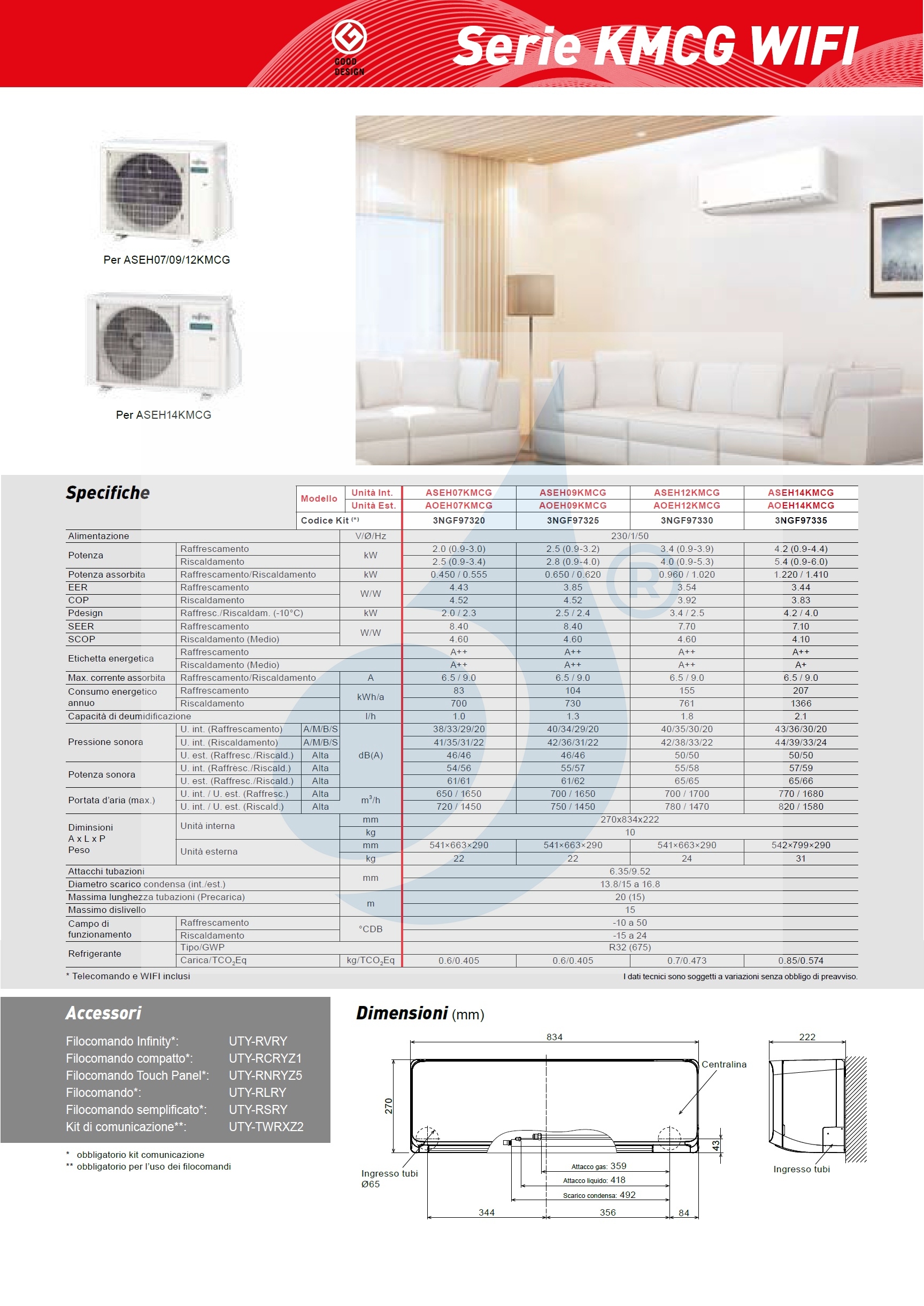 Klimaanlagen Fujitsu Mono Split Serie KMCG WiFi 12000 Btu Heizung mit Wärmepumpe mit Niedrigenergieverbrauch Invertertechnologie