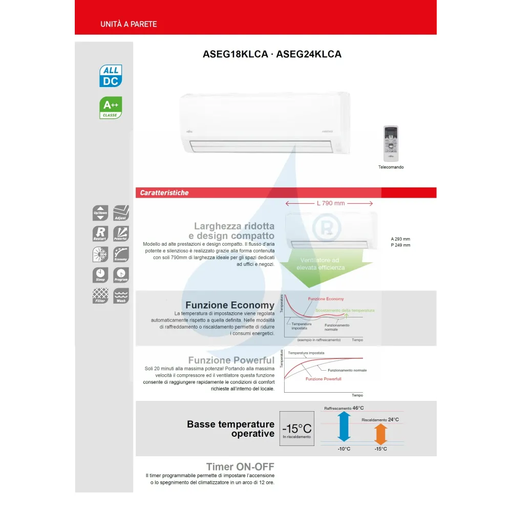 Fujitsu Mono Split 18000 Btu ASEG18KLCA AOEG18KLCA Klimaanlage Weiß KL 18-24 WiFi Optional A++ A+ R-32