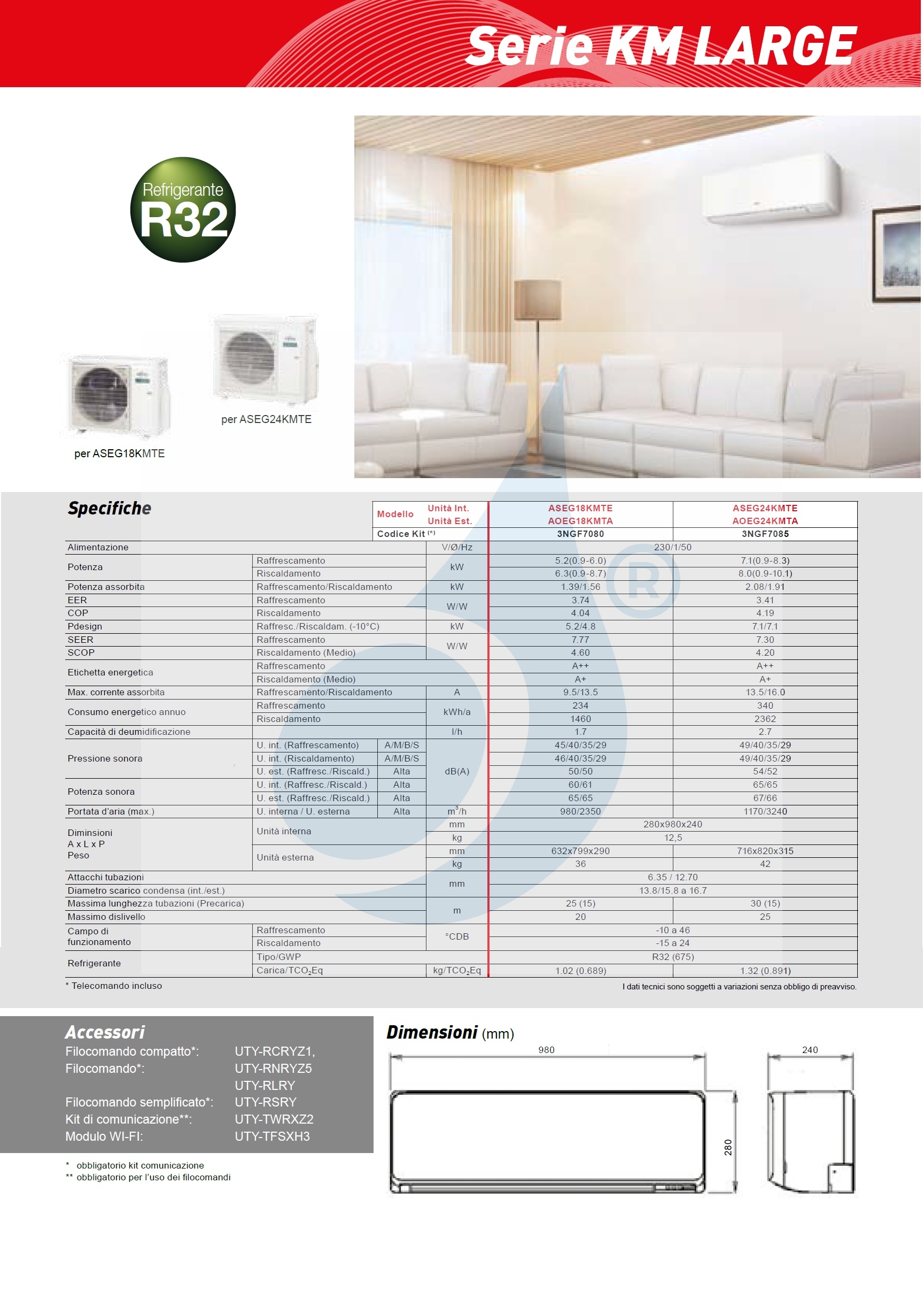 Fujitsu Mono Split 18000 Btu ASEG18KMTE AOEG18KMTA Klimaanlage Weiß KM LARGE WiFi Optional A++ A+ R-32
