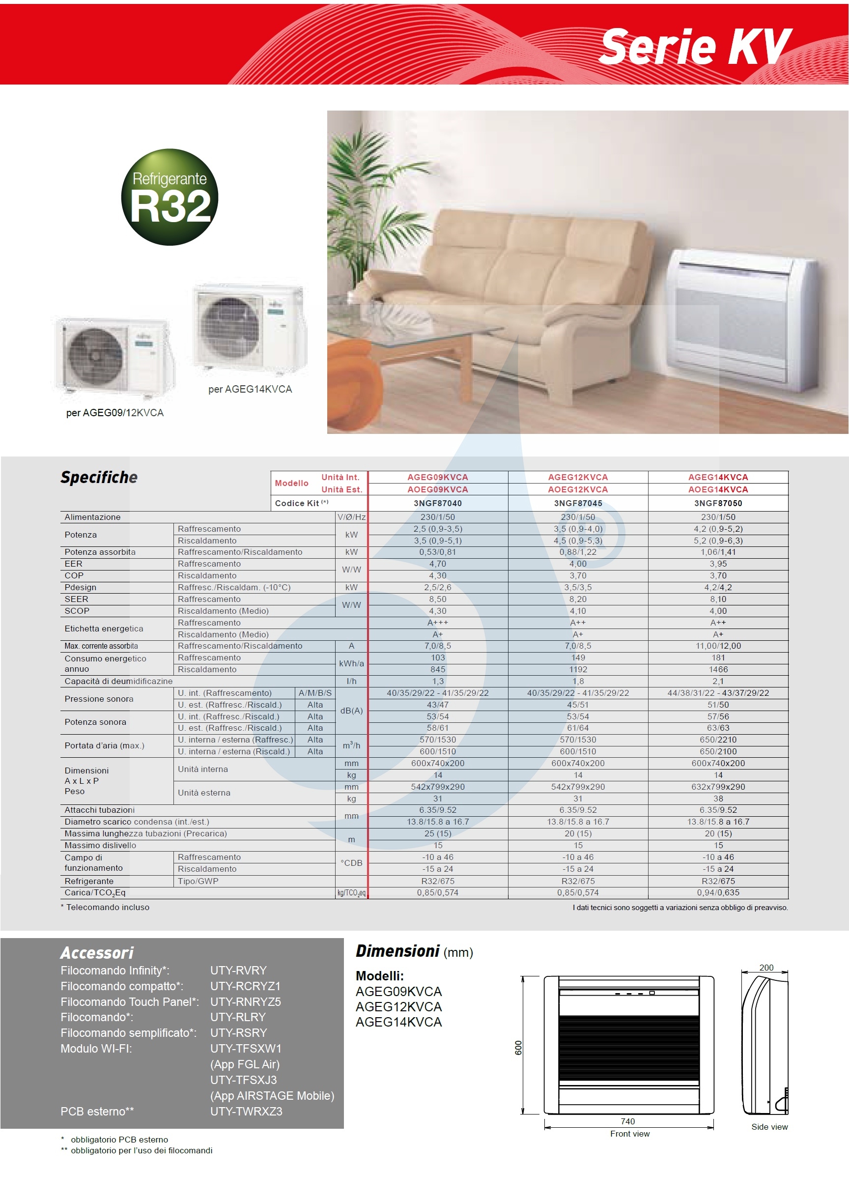 Klimaanlagen Fujitsu Mono Split Serie Fußboden KV WiFi Optional 12000 Btu Heizung mit Wärmepumpe mit Niedrigenergieverbrauch Invertertechnologie ideal für Dachböden oder Installationen unter Fenstern, optimal zum Heizen durch die Position in Bodennähe