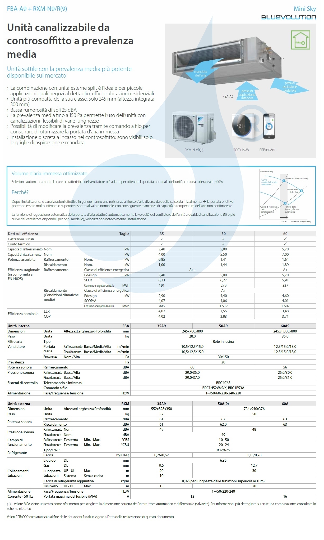 Kanalisierbare Innengeräte von Daikin Mittlere Verbreitung FBA-A9 + RXM-N9