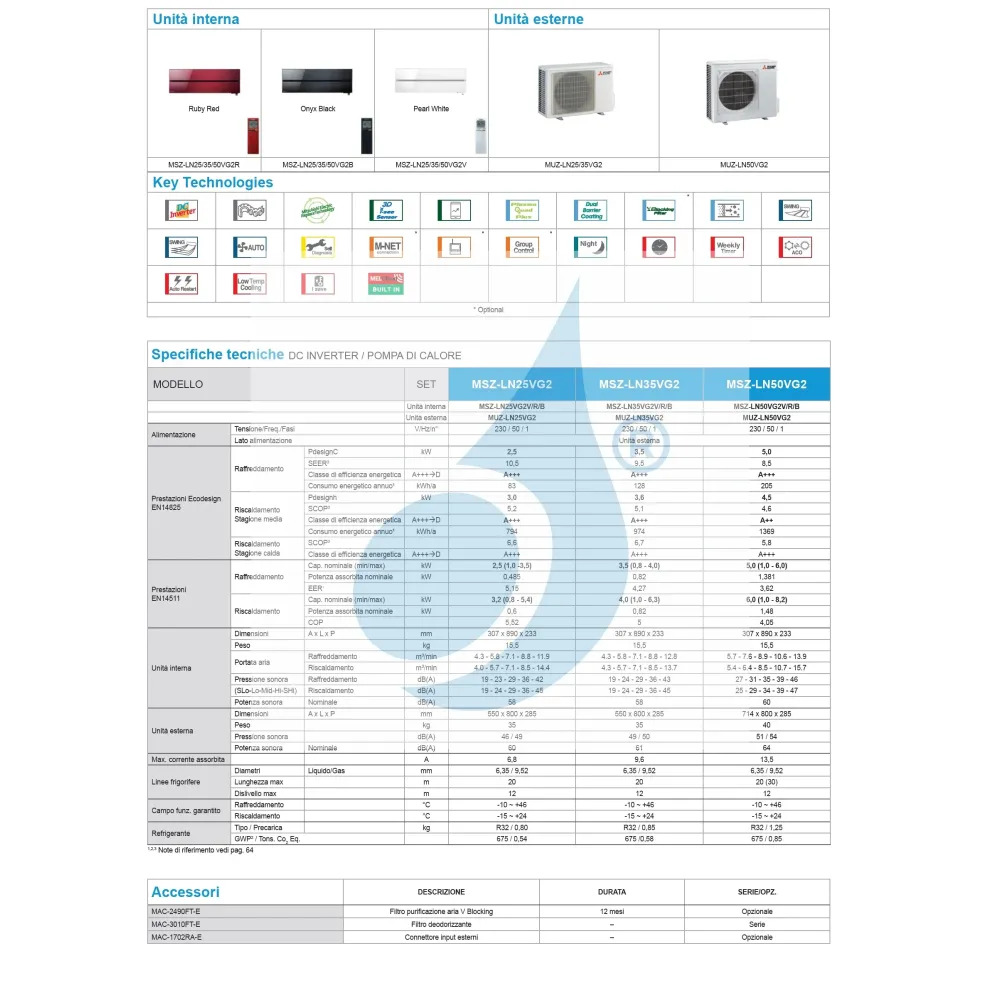 Download Technisches Datenblatt Mono Split Diamond Serie MSZ-LN Kirigamine Style (IT)
