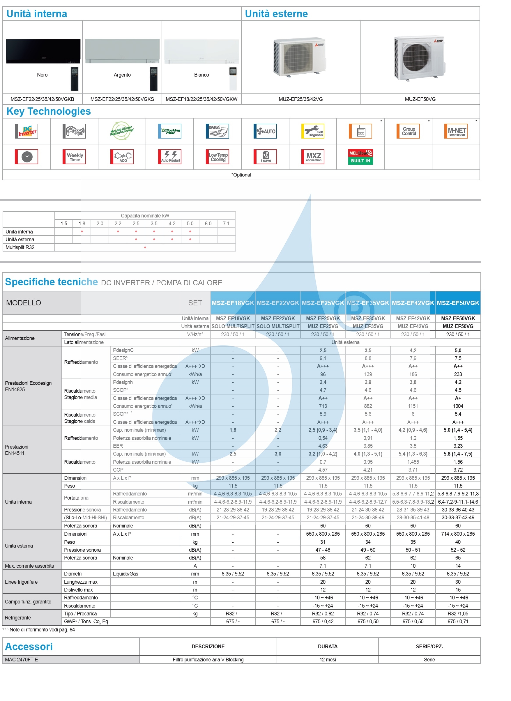 Download Technisches Datenblatt Mono Split Premium Serie MSZ-EF Wand Kirigamine ZEN (IT)