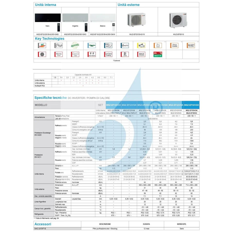 Download Technisches Datenblatt Mono Split Premium Serie MSZ-EF Wand Kirigamine ZEN (IT)