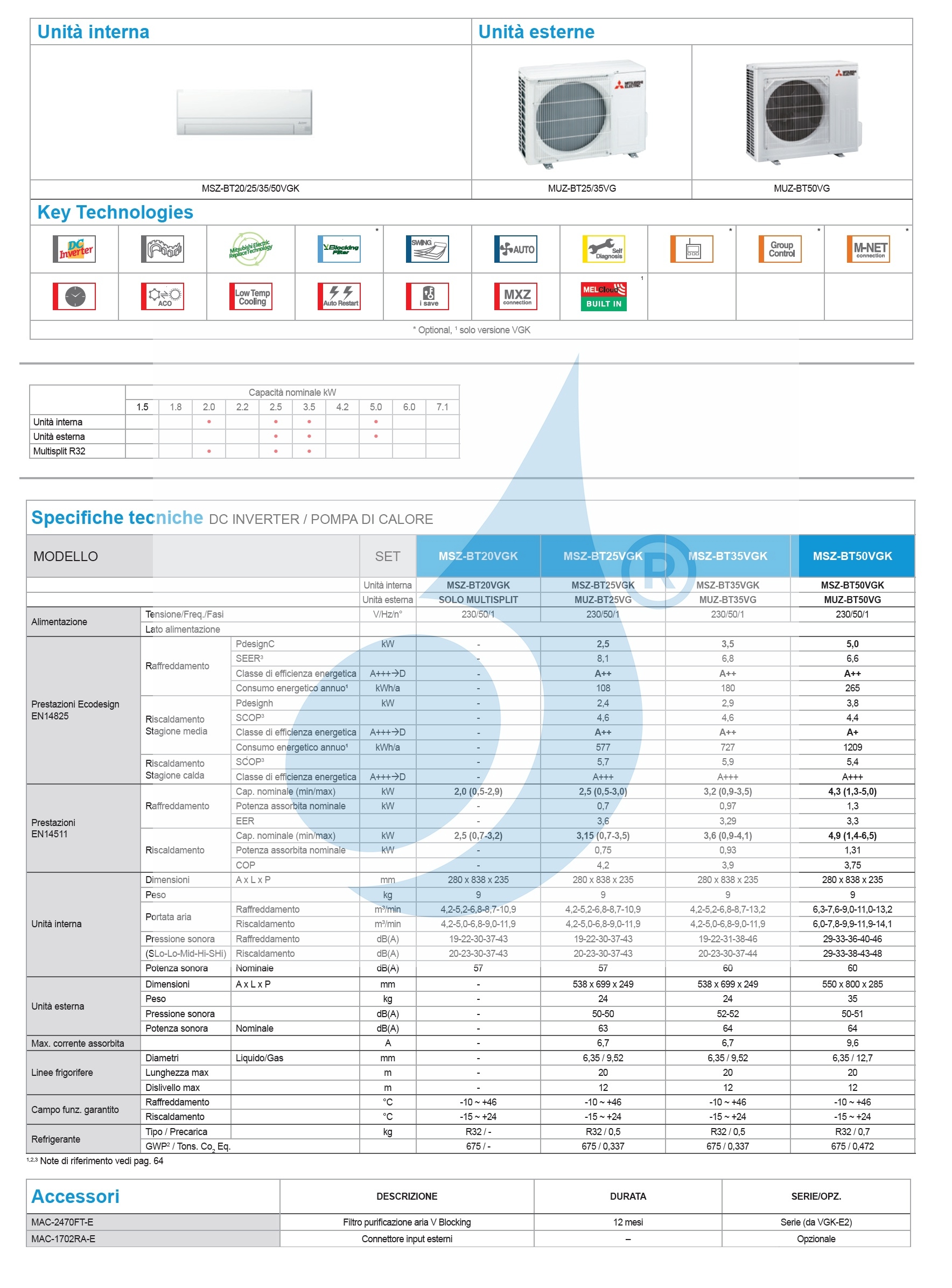 Download Technisches Datenblatt zur Mono-Split-Serie MSZ-BT Plus (IT)