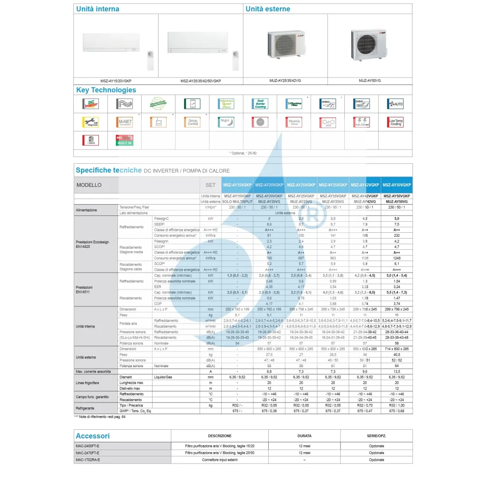 Download Technisches Datenblatt für Mono-Split der MSZ-AY Plus-Serie (IT)