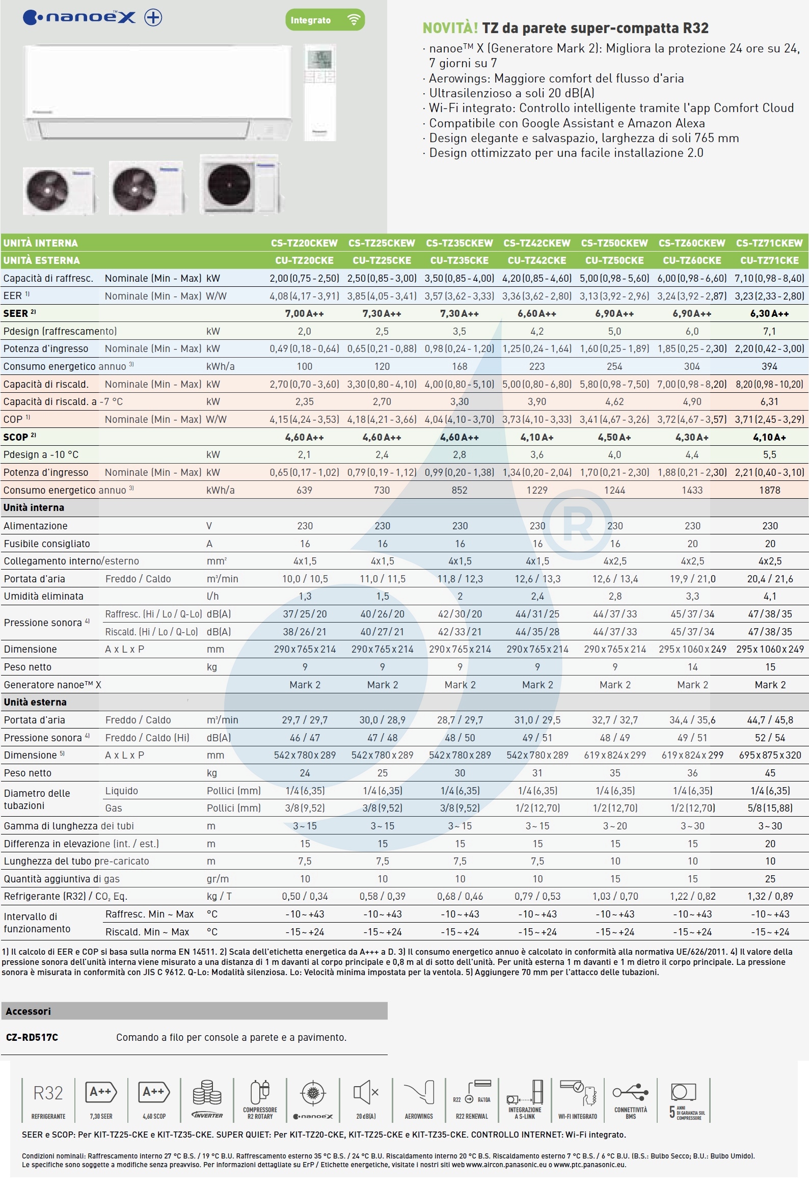 - Flüsterleise! Nur 20 dB(A) (TZ20, TZ25, TZ35) TZ Kompakt WiFi Kompakte Inneneinheiten mit kleinen Abmessungen, hocheffizienter Wärmepumpenwechselrichter, hervorragende geräuscharme Klimaregelung, zuverlässige Kaltwärme mit Luftentfeuchter. Energiebewertung CU-TZ50CKE A++