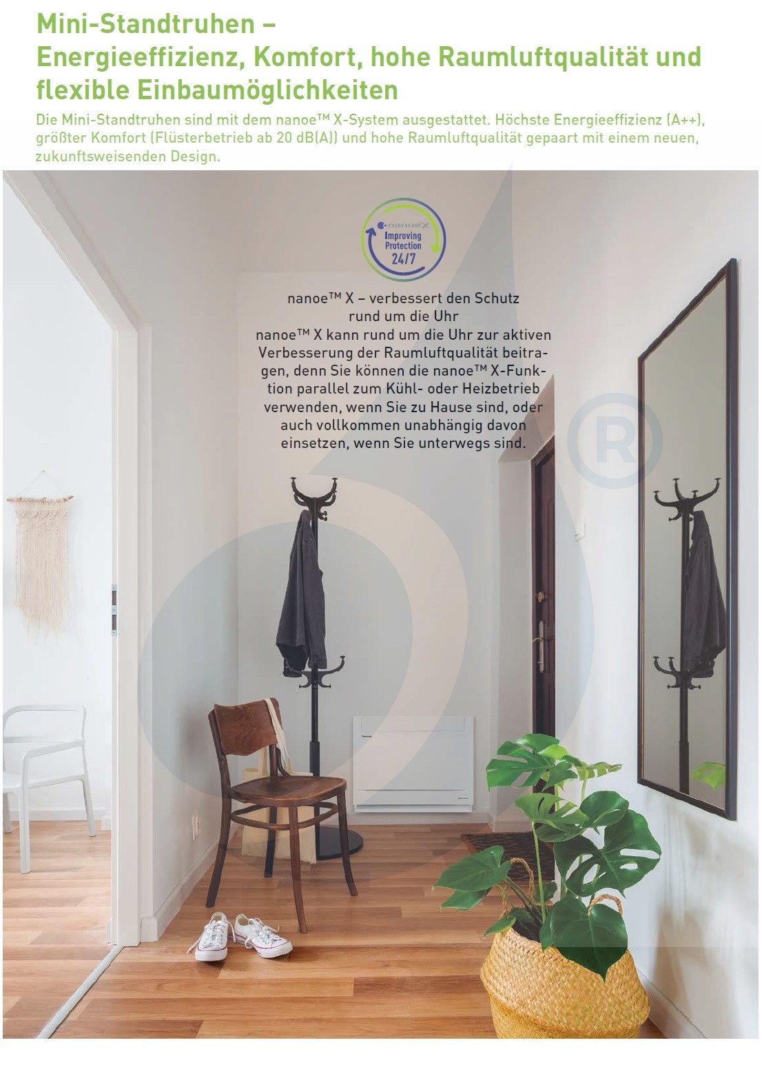 Mit der Etherea-Serie wird ein neues Nanoe X-Filtrations- und Reinigungssystem eingeführt, das mithilfe der Nanotechnologie 99% der in der Luft befindlichen oder klebenden Verunreinigungen wie Bakterien, Viren und Schimmelpilze entfernt und neutralisiert. Ideal für diejenigen, die in der Nähe von belebten Bereichen, Produktionsbereichen oder einfach für diejenigen leben, die auf die Qualität der Luft achten, die sie atmen!Datenblatt