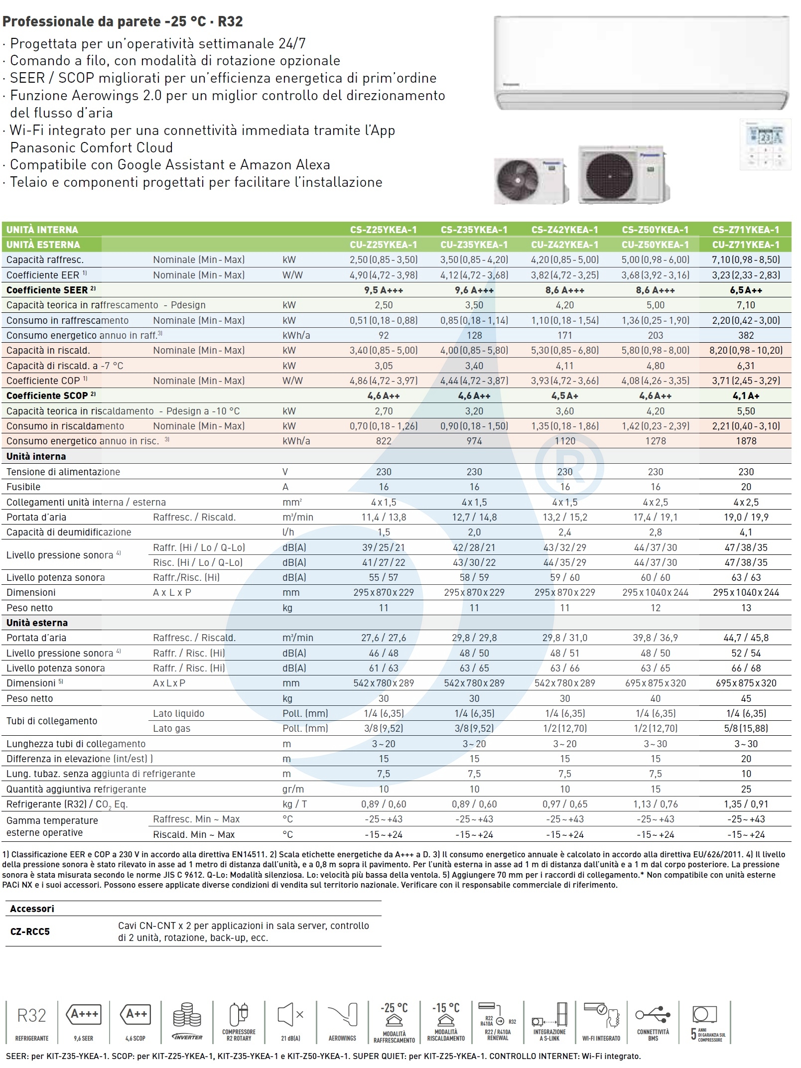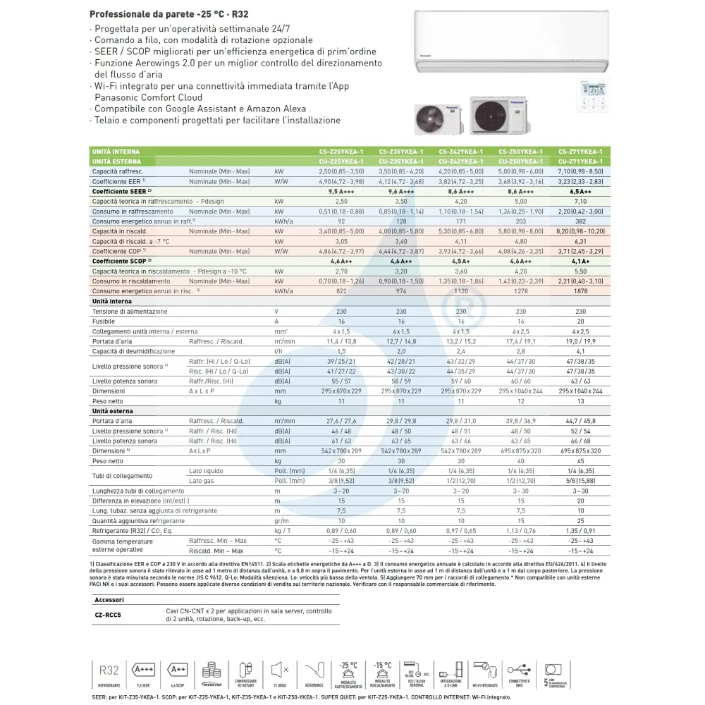 Klimageräte Panasonic Mono Split CS-Z-YKEA-1 WiFi 12000 Btu Heizung mit Wärmepumpe mit geringer Stromaufnahme in hoher Energieklasse, hervorragend leise, zuverlässige Klimaanlage, warm und kalt mit Luftentfeuchter mit kabelgebundener Steuerung als Standard.