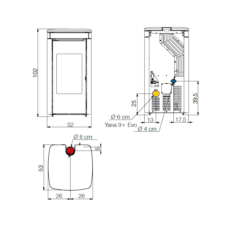 - Durchmesser des Rauchrohrs: 8 cm