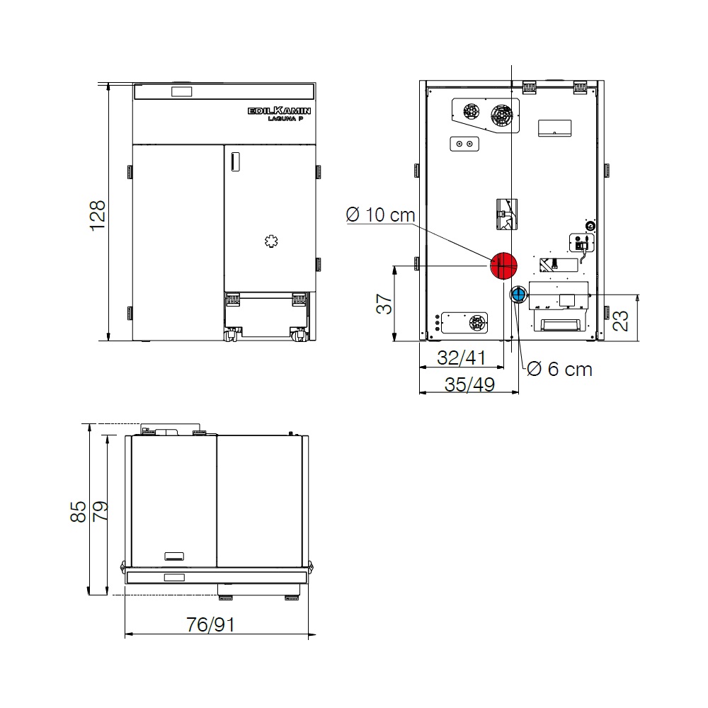 Edilkamin Laguna H 31 Evo 33,1 kW stahl schwarz rauchabzug 10 cm hinten männlich Pelletkessel hydro 816770