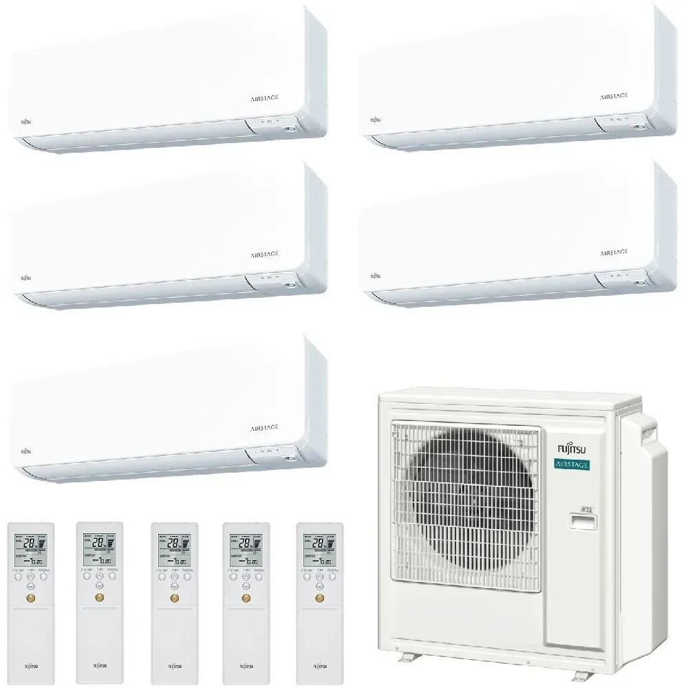 Fujitsu Penta Split 7+7+7+7+12 KGTG WiFi AOEG36KBTA5 4X ASEH07KGTG + ASEH12KGTG Klimaanlage Weiß R-32