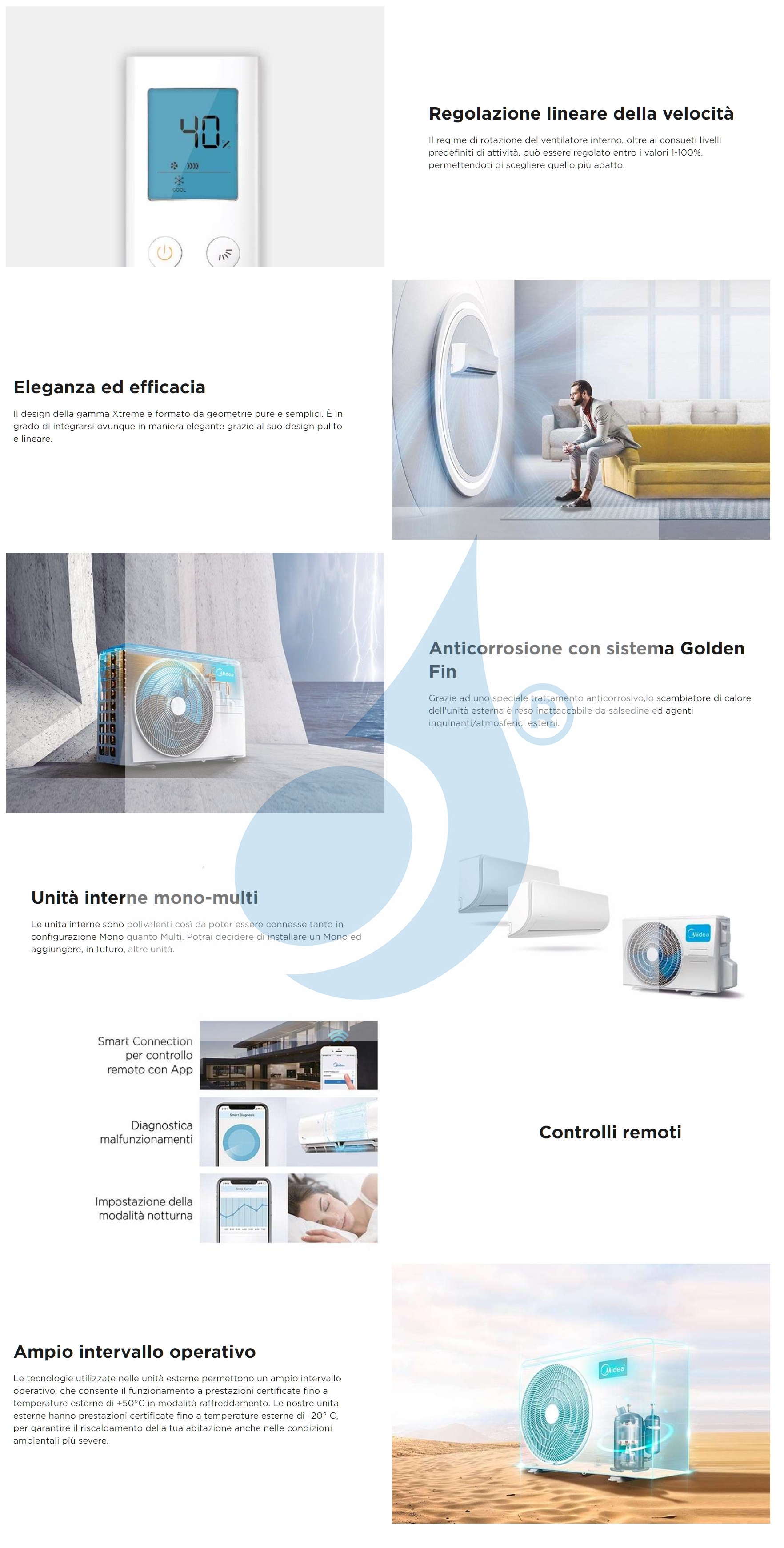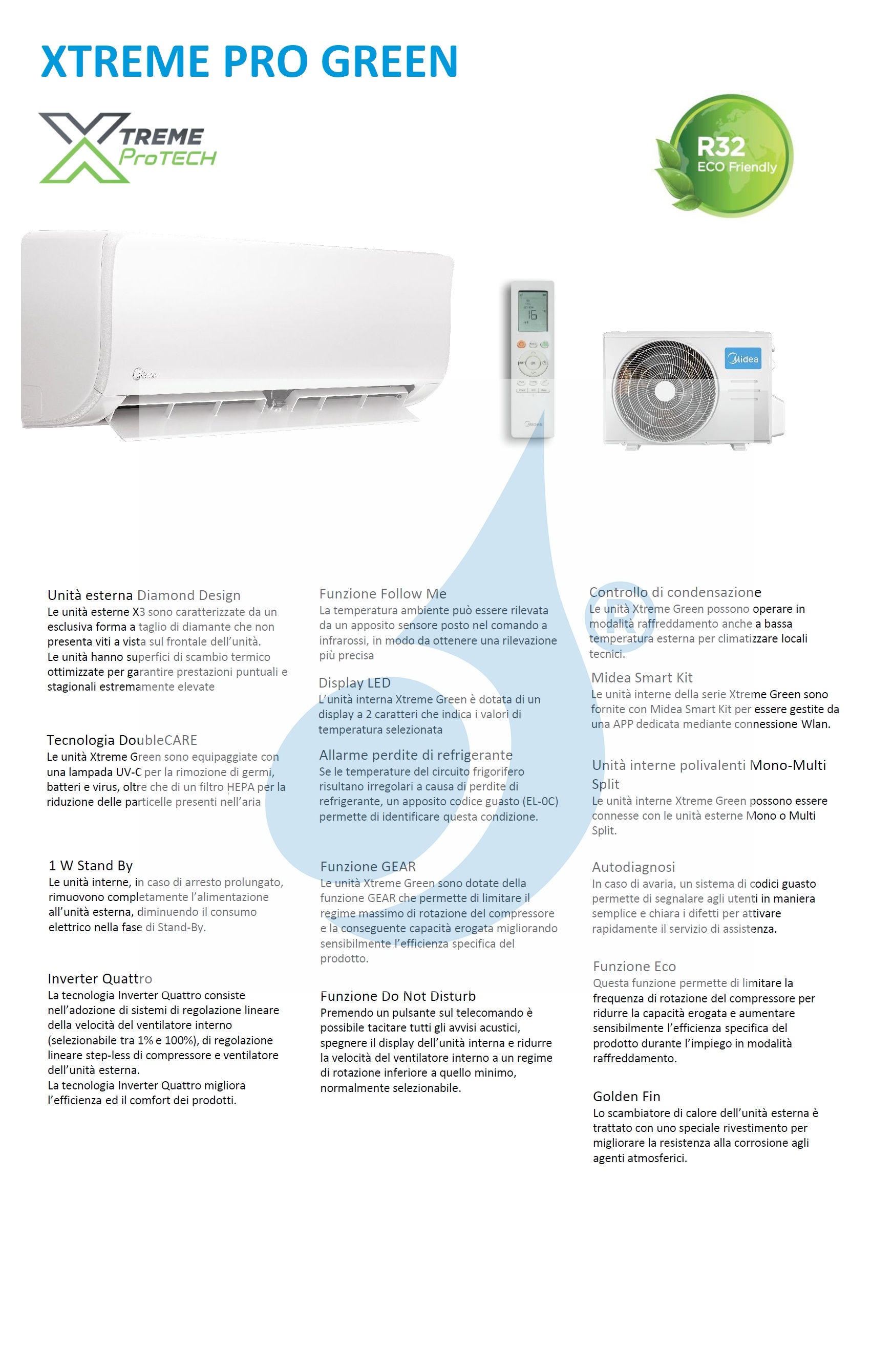 Klimageräte Midea Penta Split Serie Xtreme Pro GREEN WiFi Xtreme Pro GREEN Btu Auch bekannt als Xtreme Pro Tech-Serie, hocheffiziente Wärmepumpenheizung mit geringem Energieverbrauch, Luftentfeuchter