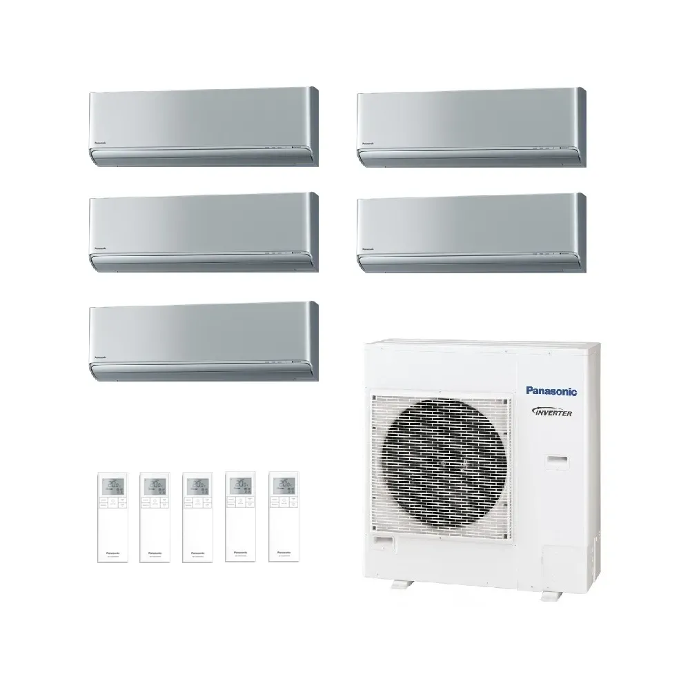 Panasonic Penta Split 2.5+2.5+2.5+2.5+3.5 kW CU-5Z90CBE 4 x CS-XZ25CKEW + CS-XZ35CKEW Klimaanlagen WiFi Silber R-32