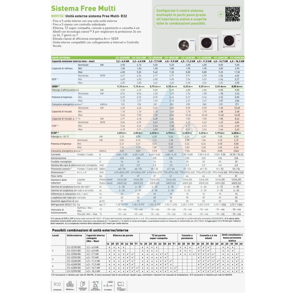 Empfohlen für Umgebungen ein Innengerät bis zu 27 mq + ein Innengerät bis zu 27 mq + ein Innengerät bis zu 27 mq + ein Innengerät bis zu 27 mq + ein Innengerät bis zu 36 mq