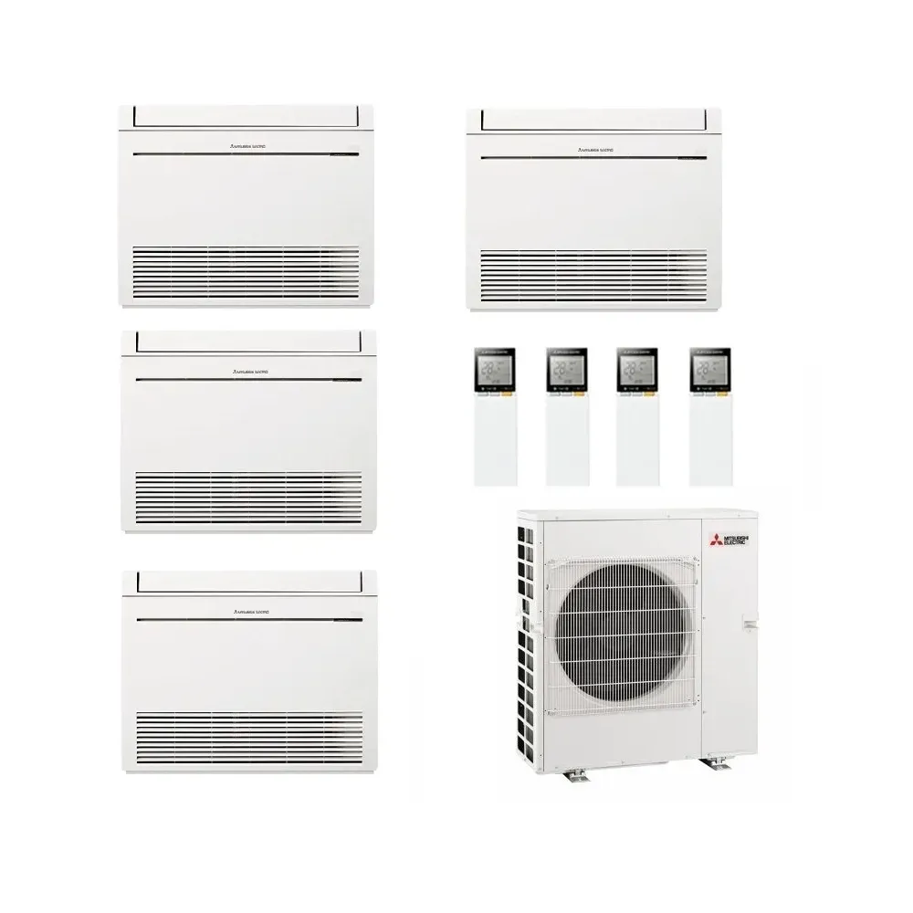 Klimaanlagen Mitsubishi Quadri Split Serie MFZ-KT WiFi Optional 9000+9000+9000+9000 Btu Inneneinheit für Mitsubishi-Klimaanlagen Mono Split- und Multi Split-Konfiguration mit Heiz- und Kühlmodus. Das Truhengerät MFZ-KT ist besonders für Anwendungen geeignet, in denen sowohl der Kühl- als auch der Heizbetrieb regelmäßig zum Einsatz kommt. Wie ein Heizkörper in Bodennähe aufstellbar.