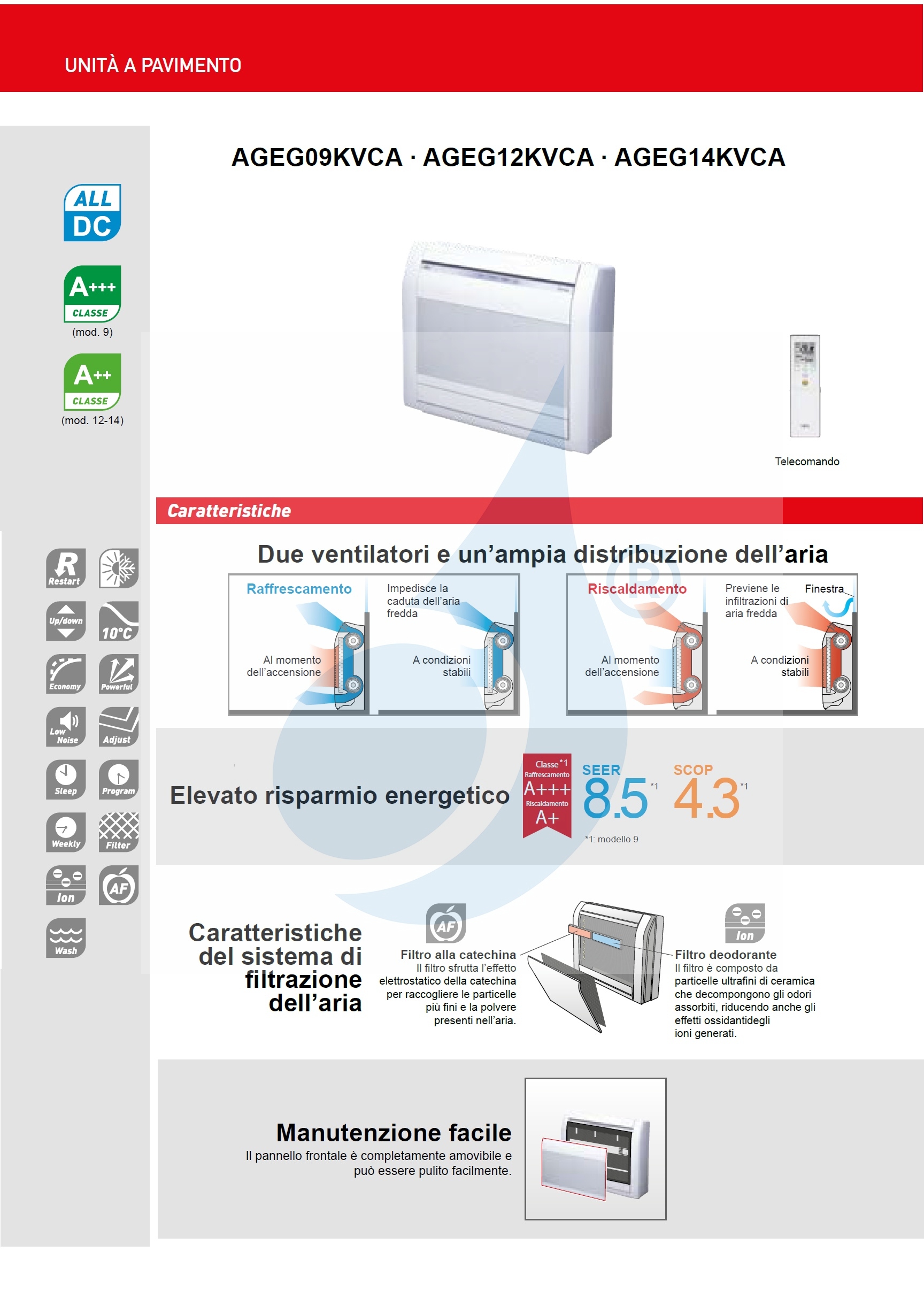 Bodeneinheit für den Innenbereich AGEG09KVCA 9.000 BTU 2.5 kW KV Floor Serie