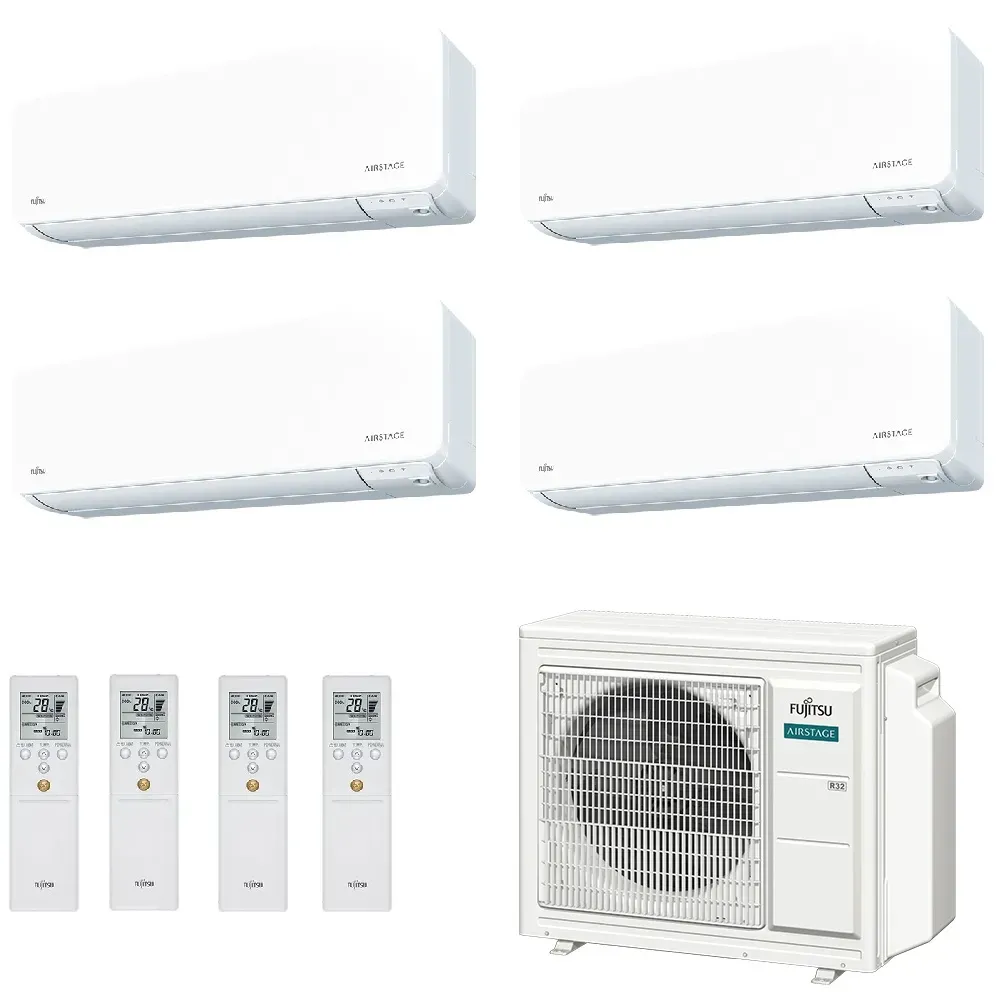 Fujitsu Quadri Split 7+9+15+15 Klimaanlage AOEG30KBTA4 ASEH07KGTG ASEH09KGTG ASEH14KGTG ASEH14KGTG KGTG Weiß R-32 A+++ A++