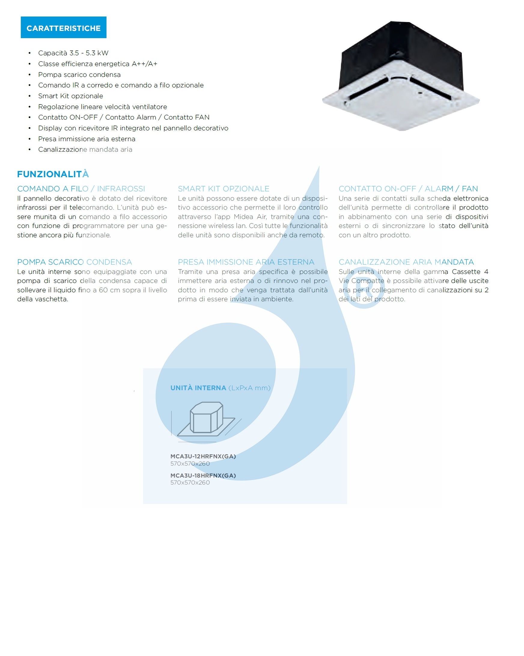 MCA3I-09HRFNX(GA) 9.000 BTU 2.5 kW Serie Kompakte 4-Wege-Kassette