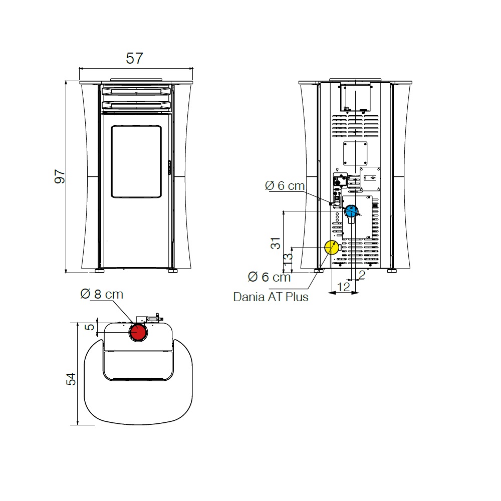 - Durchmesser des Rauchrohrs: 8 cm