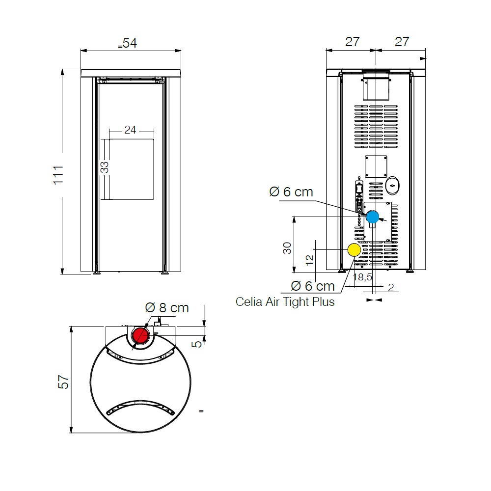 - Durchmesser des Rauchrohrs: 8/13 cm