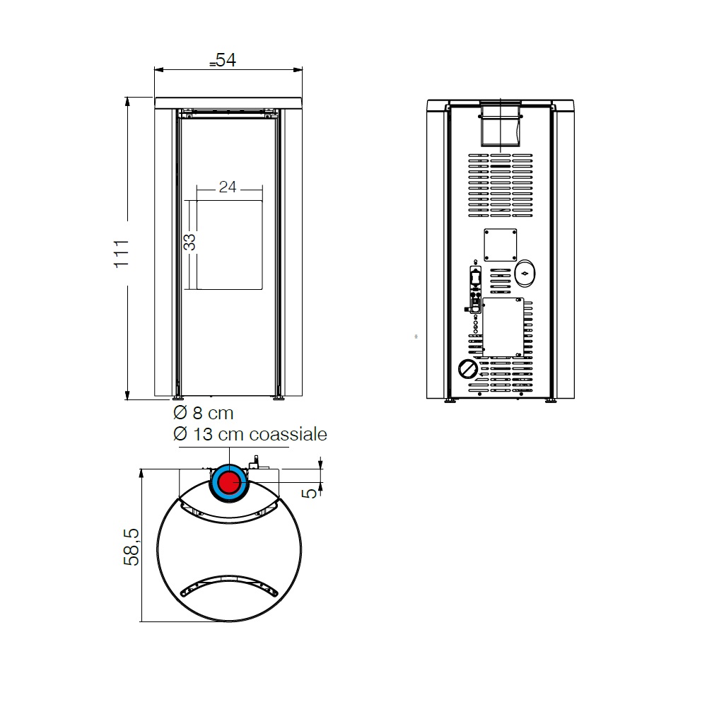 - Durchmesser des Rauchrohrs: 8/13 cm