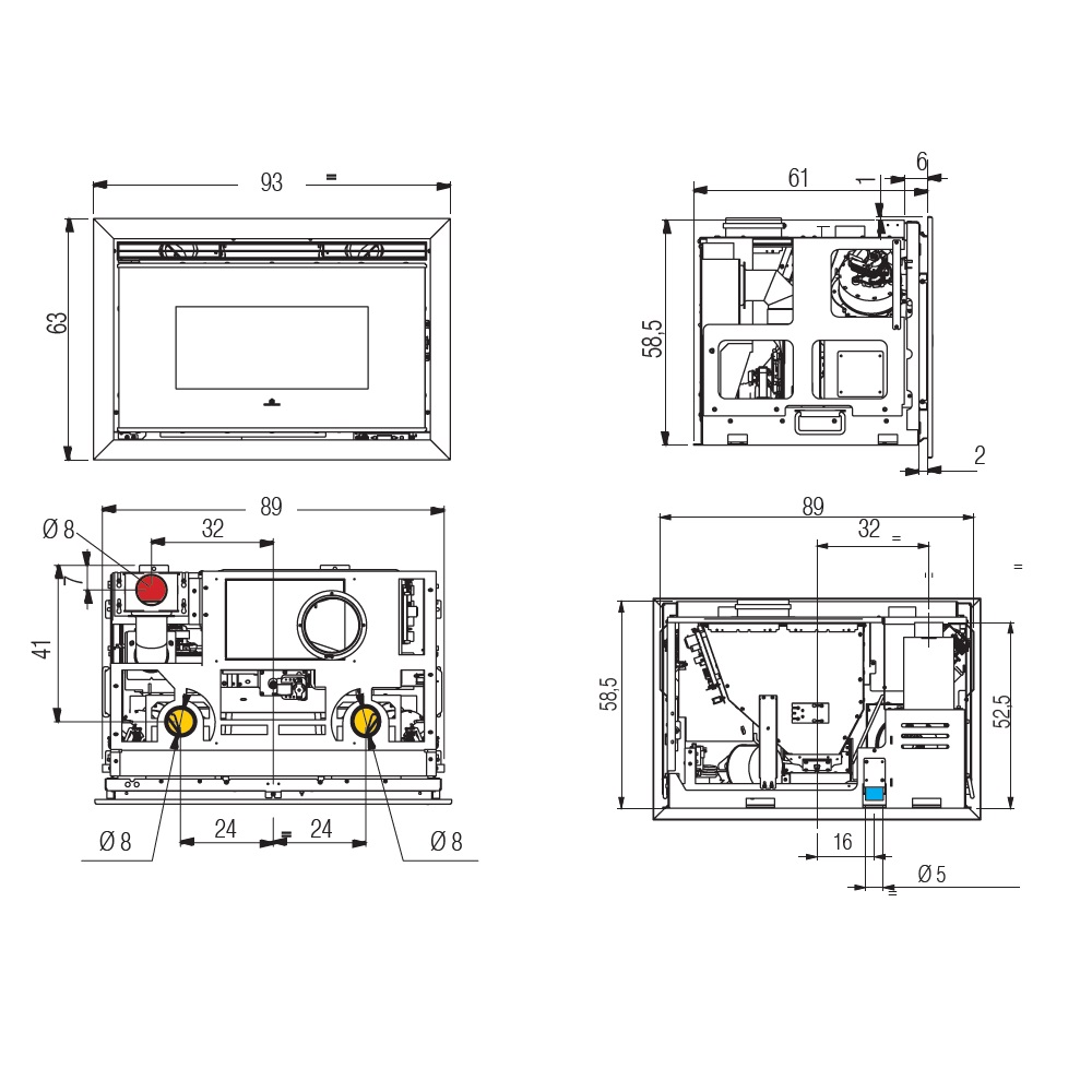 - Durchmesser des Rauchrohrs: 8 cm