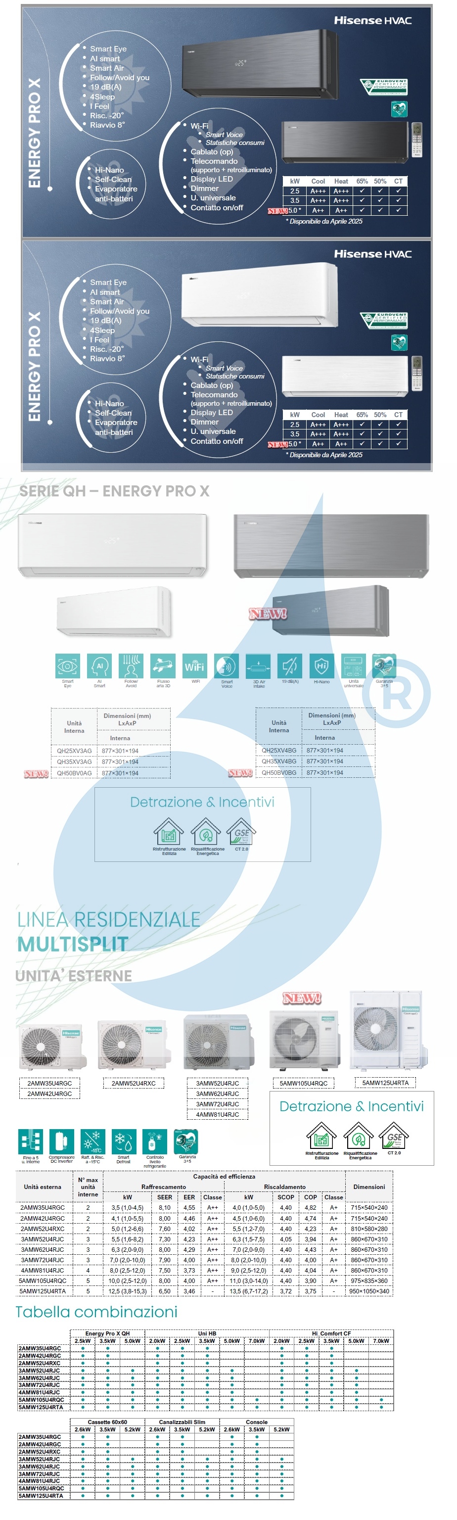 Hisense Klimaanlagen Trio Split Energy PRO X Weiß 9+9+9 Btu 3AMW62U4RJC QH25XV4AG QH25XV4AG QH25XV4AG WiFi 2.5+2.5+2.5 kW