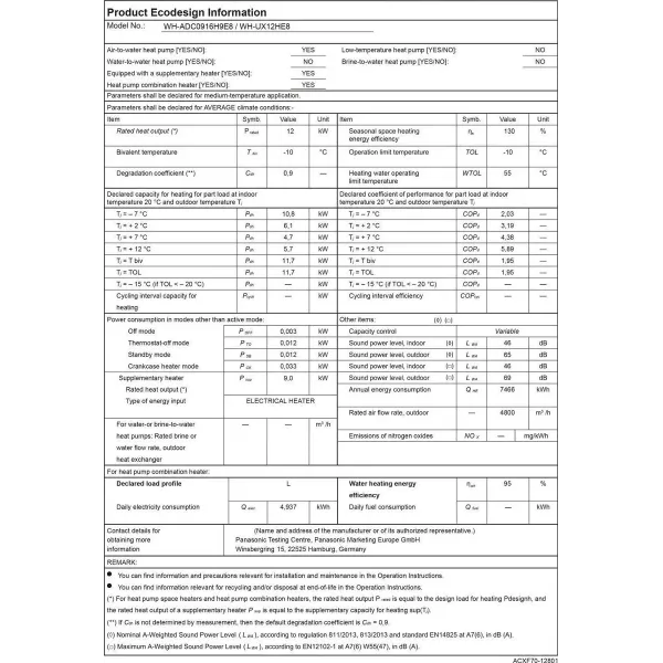 Panasonic Wärmepumpe KIT-AXC12HE8 12 kW 400 v Aquarea T-CAP