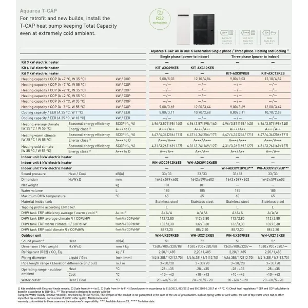 Panasonic Aquarea T-CAP Wärmepumpe KIT-AXC12KE5 12 kW 220 v R32 Kombi-Hydromodul Generation K einzelphase